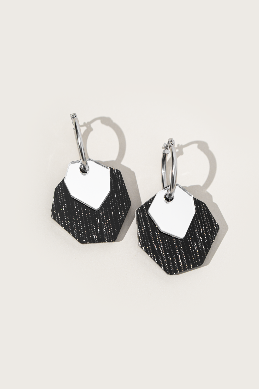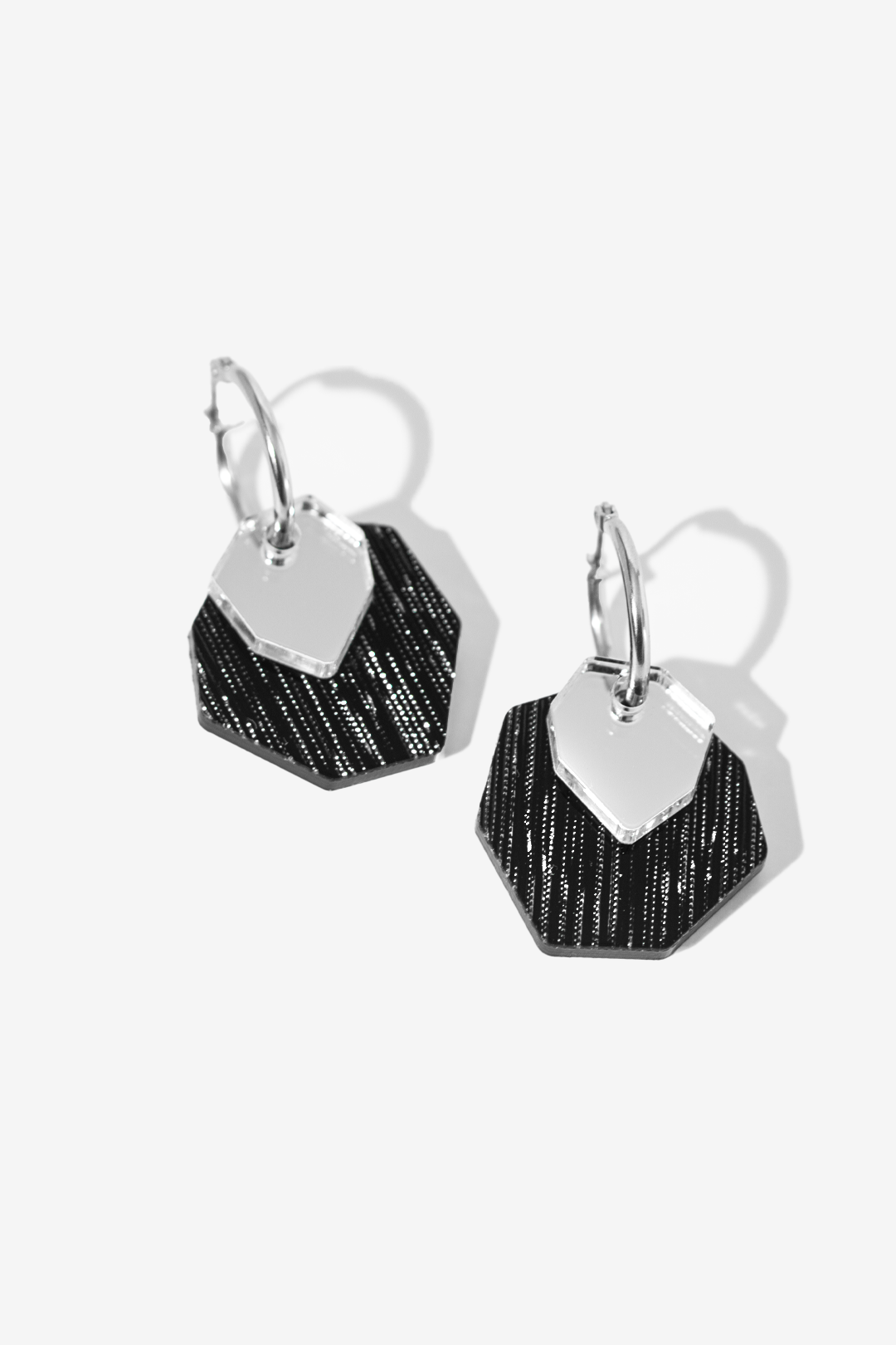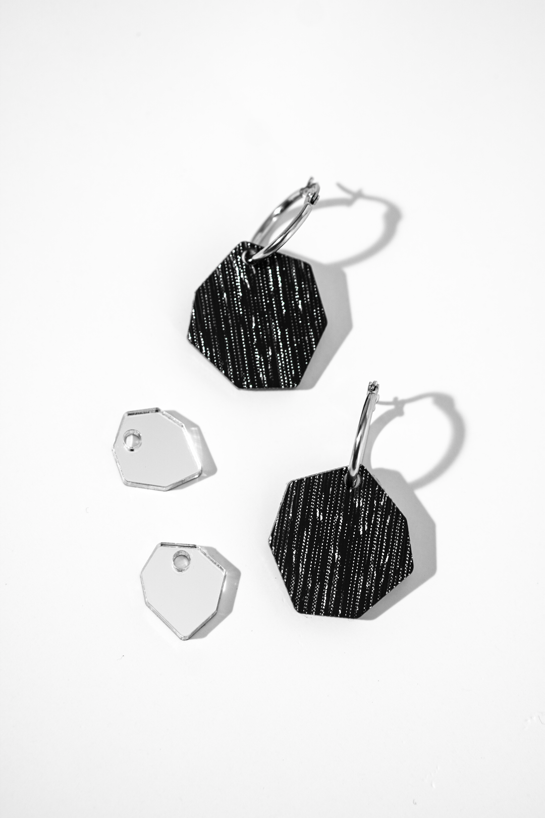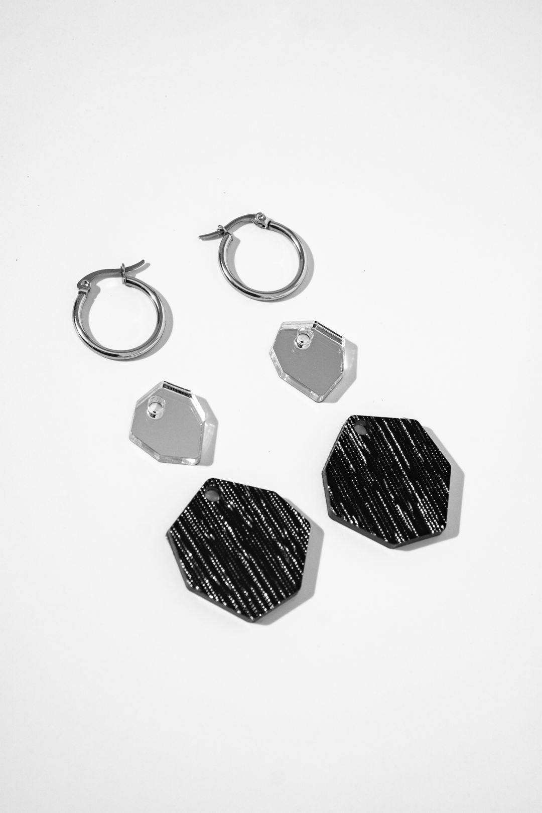 Estos aretes 3 en 1, confeccionados a mano en acrílico con destellos negro y plateado,, son la fusión perfecta de versatilidad y estilo moderno. Diseñados para ofrecer tres looks diferentes en un solo par, estos aretes permiten adaptar tu estilo según la ocasión sin necesidad de múltiples accesorios. El acrílico, ligero y duradero, se transforma en aros elegantes que puedes usar juntos para un look llamativo o separados para uno más casual.